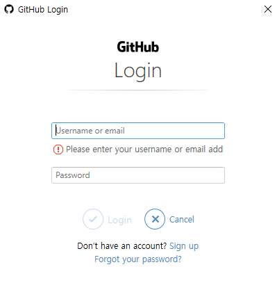 sourceTree 에서 push, 패치를 누르면 github로그인 창이 나오는데 맞게 입력을 해도 아래 처럼 에러가 나오면서 진행이되지 않는다. (이유를 모르겠음..)