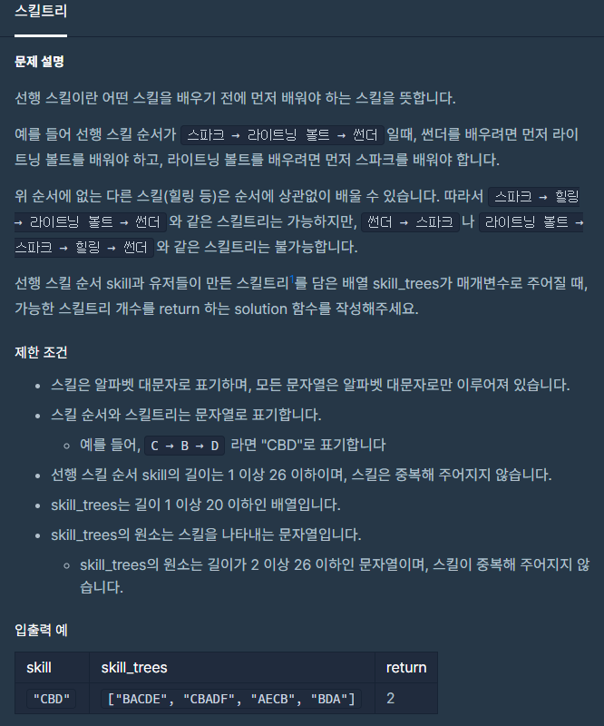 코딩테스트 연습 - 스킬트리