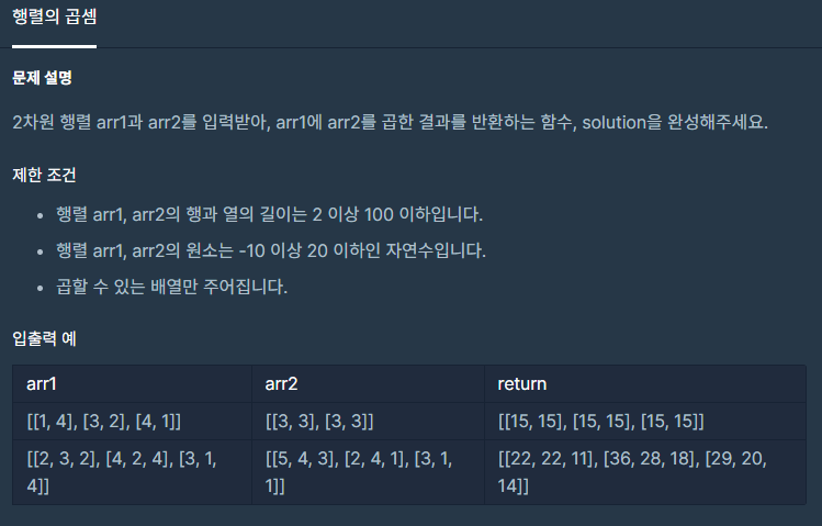 행렬은 arr1에 행이랑 arr2에 열이랑 곱하면 된다.