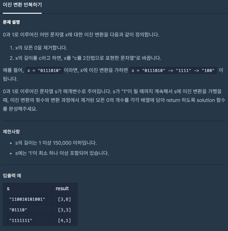 문자열을 리스트로 만들면 count함수를 사용해 갯수를 구할 수 있게되고 그러면 그 갯수로 문자열에 길이를 파악할 수 있으니 문자열에 길이를 2진수로 바꿔줘 반복해주면 된다.