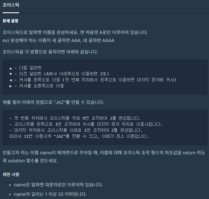 코딩테스트 연습 - 조이스틱
