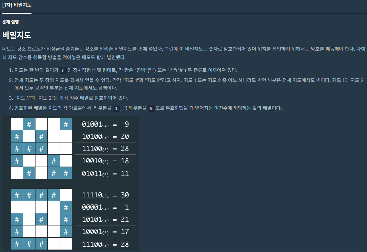 https://programmers.co.kr/learn/courses/30/lessons/17681?language=python3