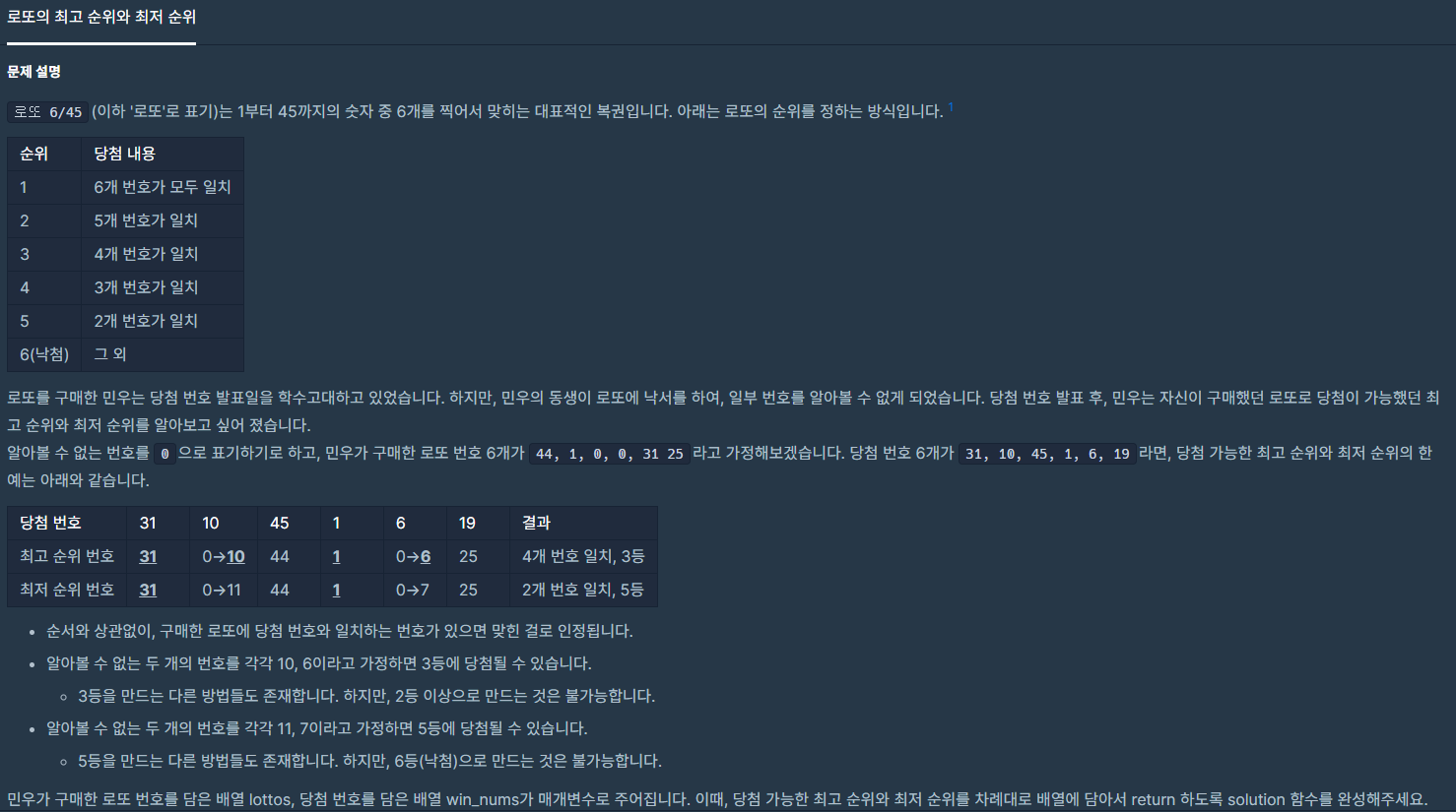 코딩테스트 연습 - 로또의 최고 순위와 최저 순위