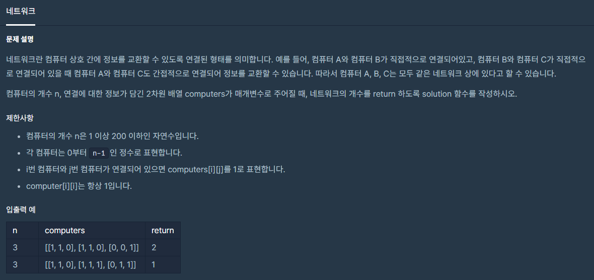 코딩테스트 연습 - 네트워크