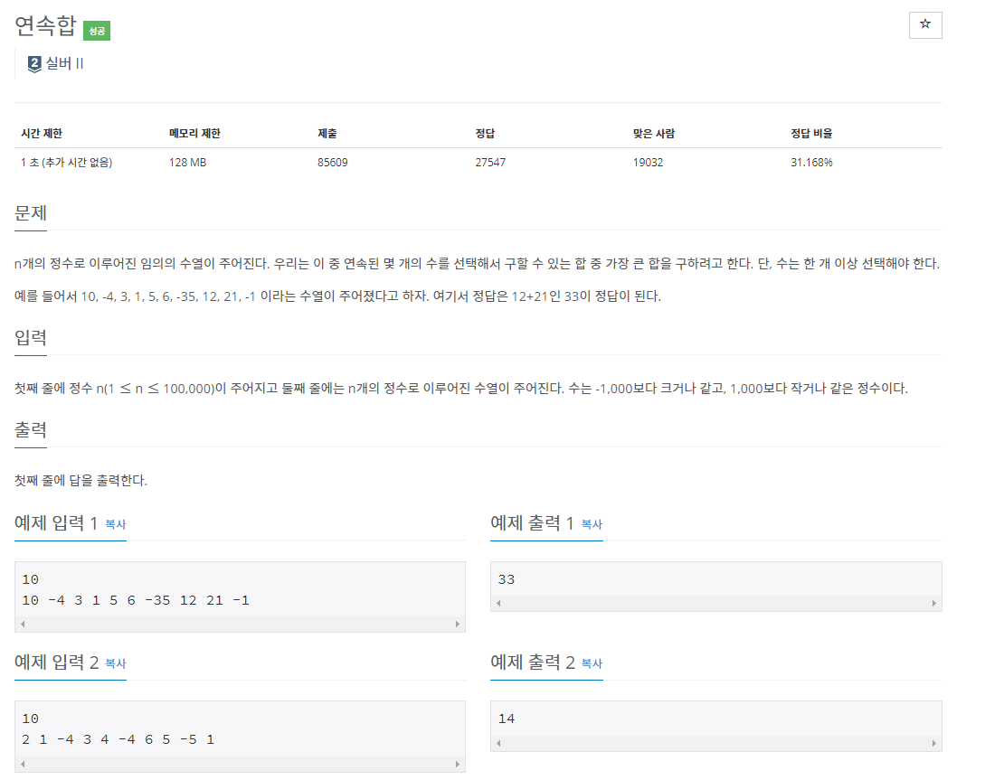 연속된 값을 더한값이 더 클 수도 있고 더하지 않은 값이 더 클수도 있다.