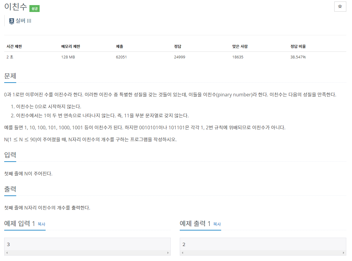 2193번: 이친수