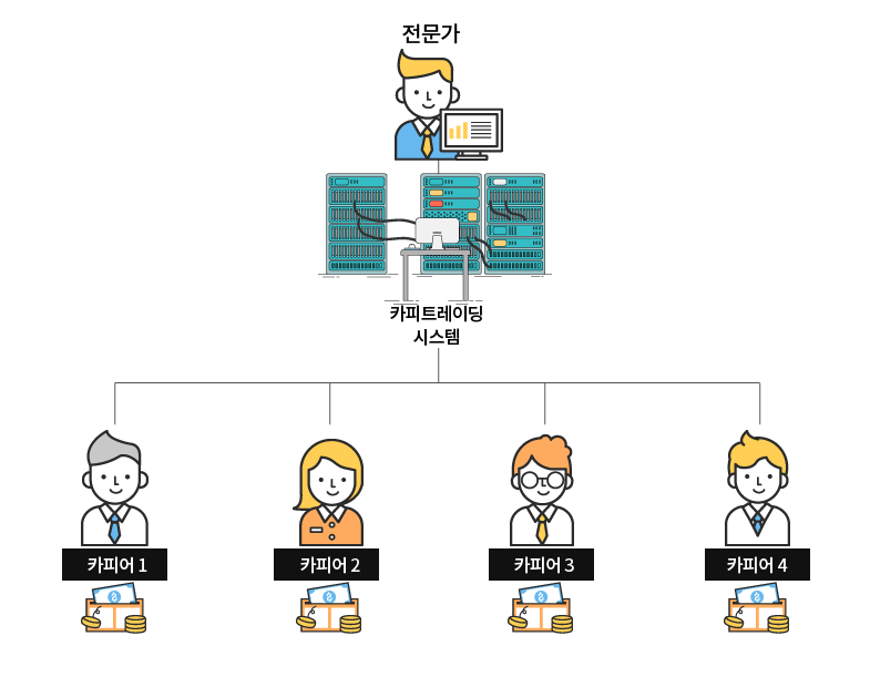 copy trading 이란 자신이 원하는 리더에게 원하는 금액만큼을 투자한뒤 리더가 코인을 매매하게 되면 리더를 따라 코인이 자동으로 매매되는 방식입니다.