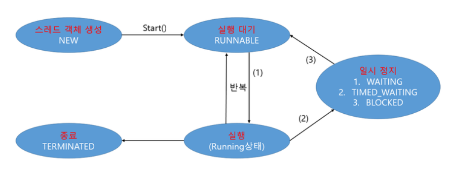 - WAITING : 일시 정지, 다른 스레드의 통지를 기다림
