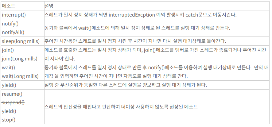 쓰레드 상태제어 메서드