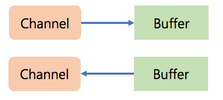 - 채널은 항상 버퍼에서 부터 읽거나 버퍼로 쓴다.