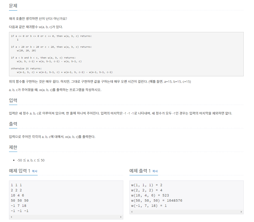 print(f'w({a}, {b}, {c}) = {w(a,b,c)}')