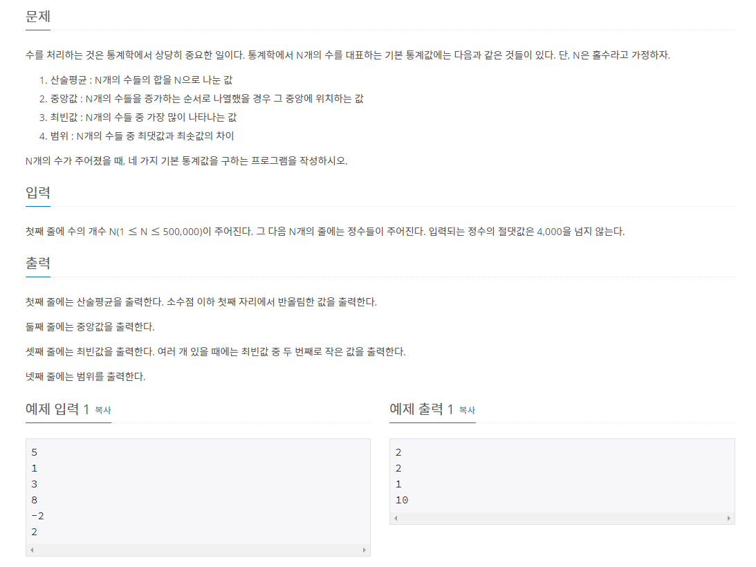 2108번: 통계학