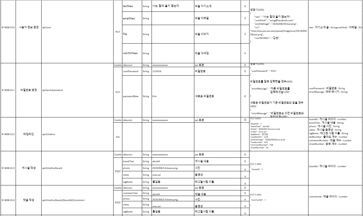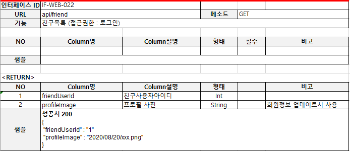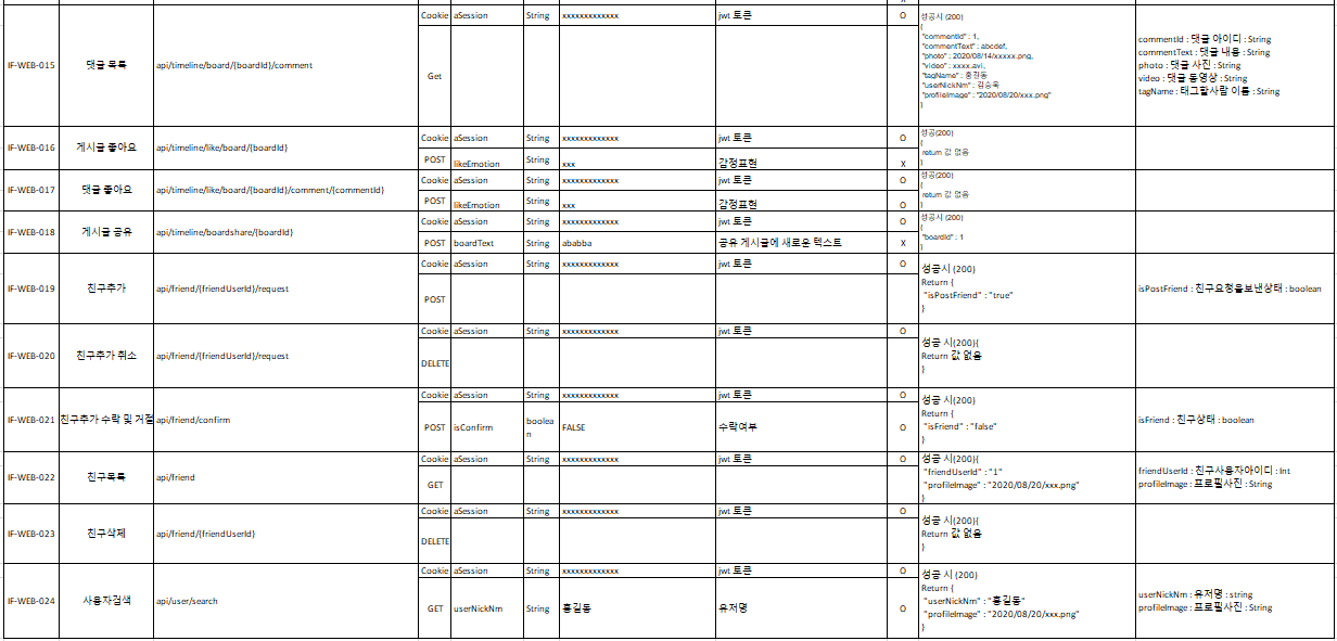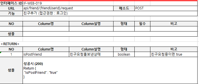 오늘은 마지막 인터페이스 명세서 SNS에서 중요한 친구관리 시스템에 대해서