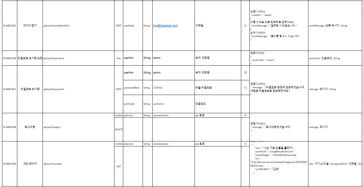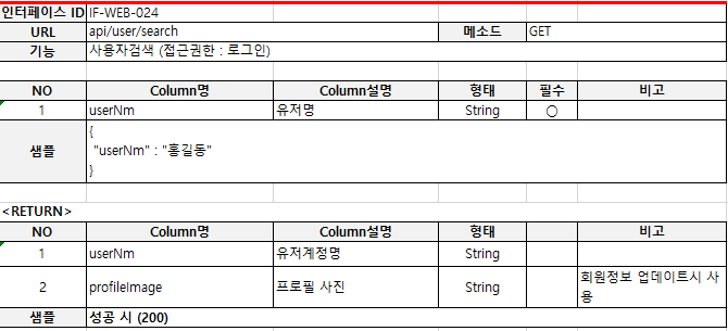 인터페이스 명세서를 작성해보겠다.