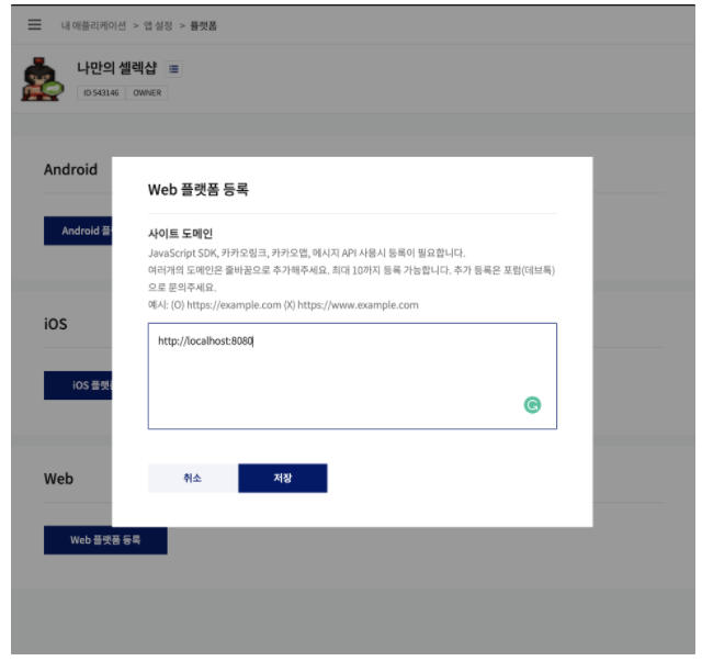 카카오 로그인 사전설정