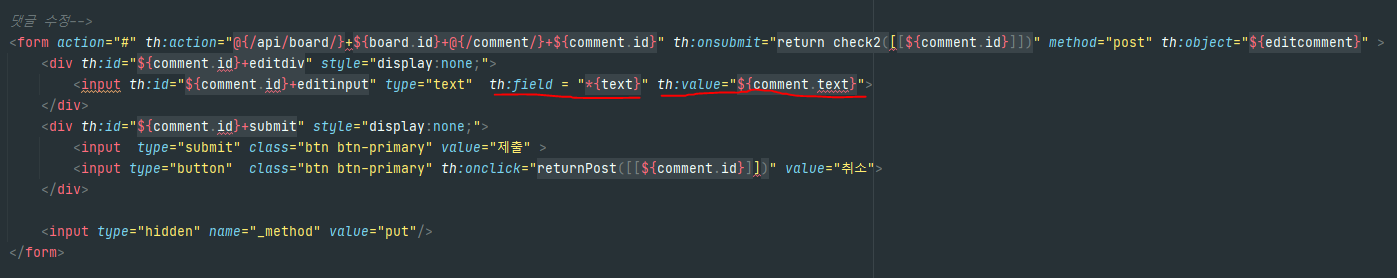 - 댓글 본문이 사라지고, 댓글 내용, 저장 버튼 생성하기