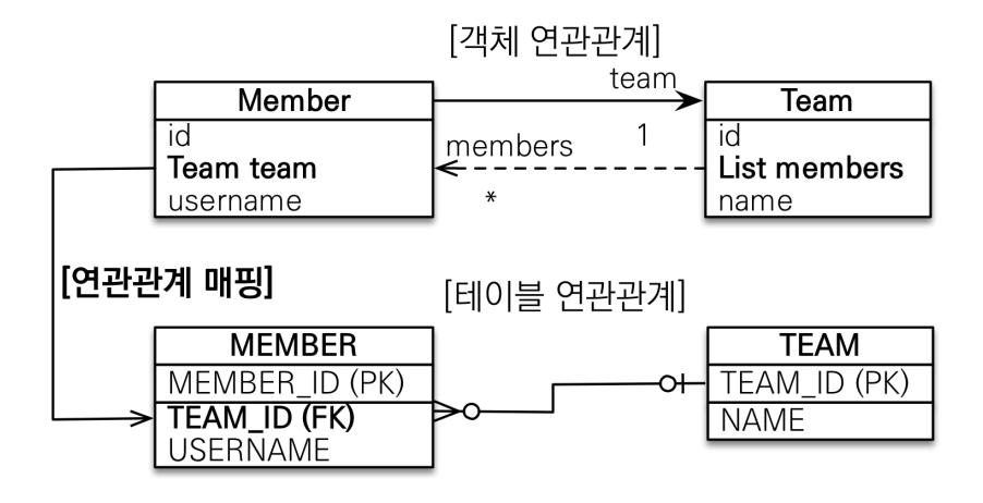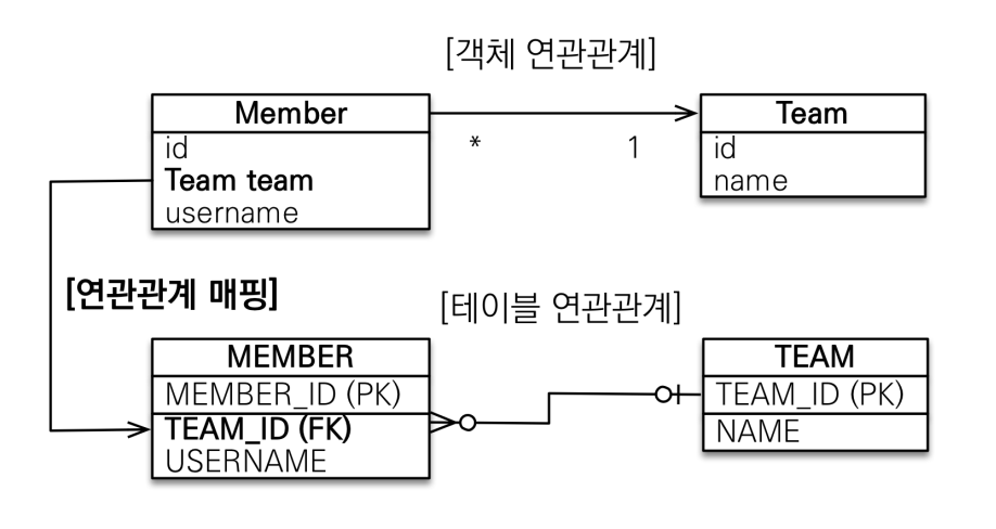 - 객체와 테이블의 차이 발생, JoinColumn을 꼭 사용해야함 (그렇지 않으면 중간에 테이블을 하나 추가해서 사용한다.)