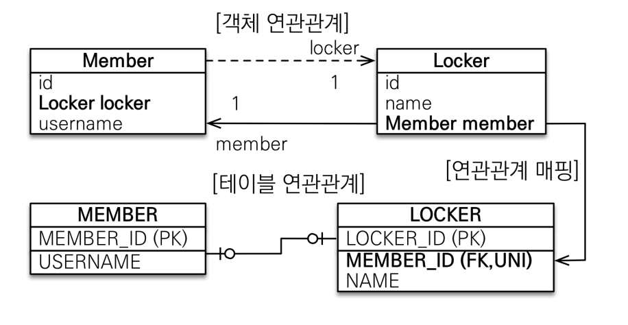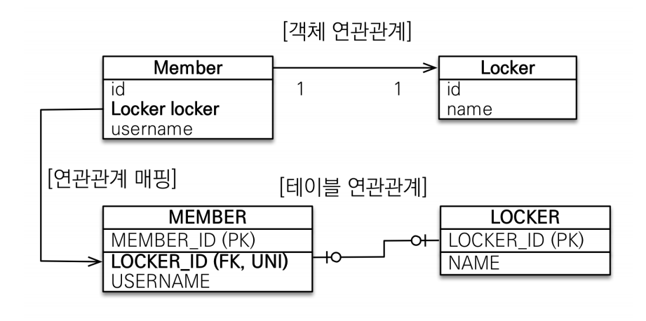 - 다대일 단방향 매핑과 유사 (외래키에 UNI키만 추가)