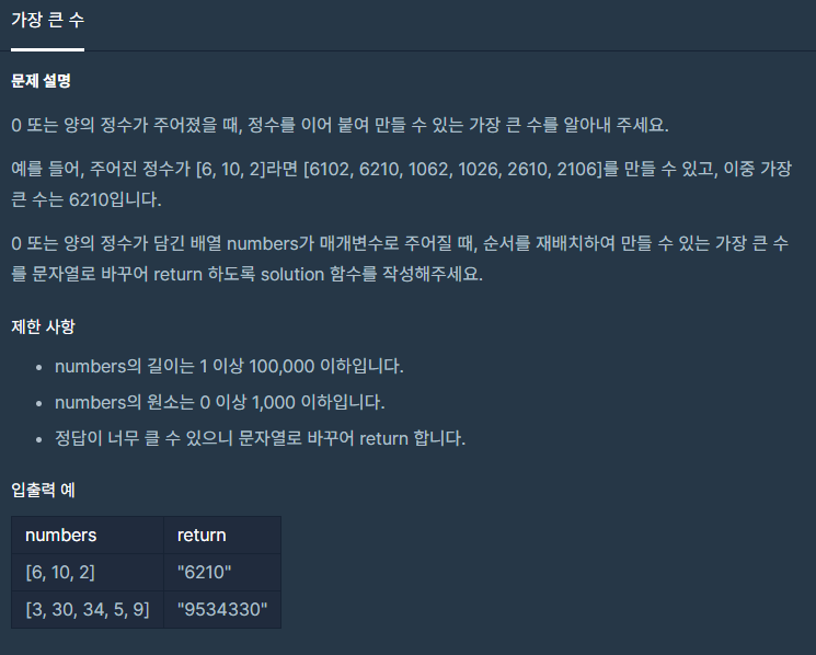 코딩테스트 연습 - 가장 큰 수
