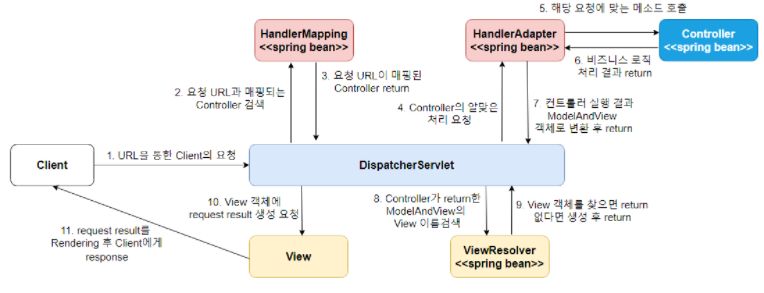 - ViewResolver에서 controller가 리턴한 view 검색후 view를 클라이언트로 보냄