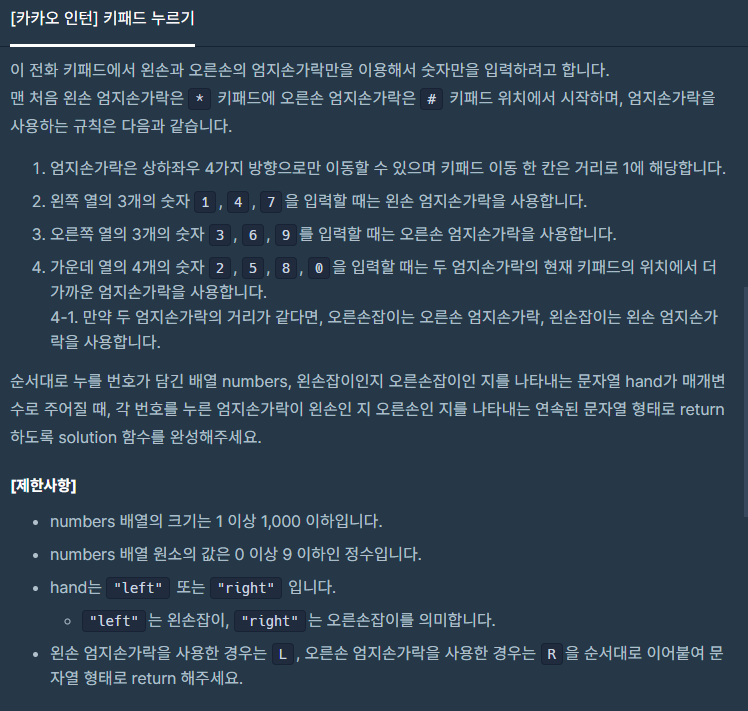[프로그래머스] Level1, 키패드 누르기 (Python)