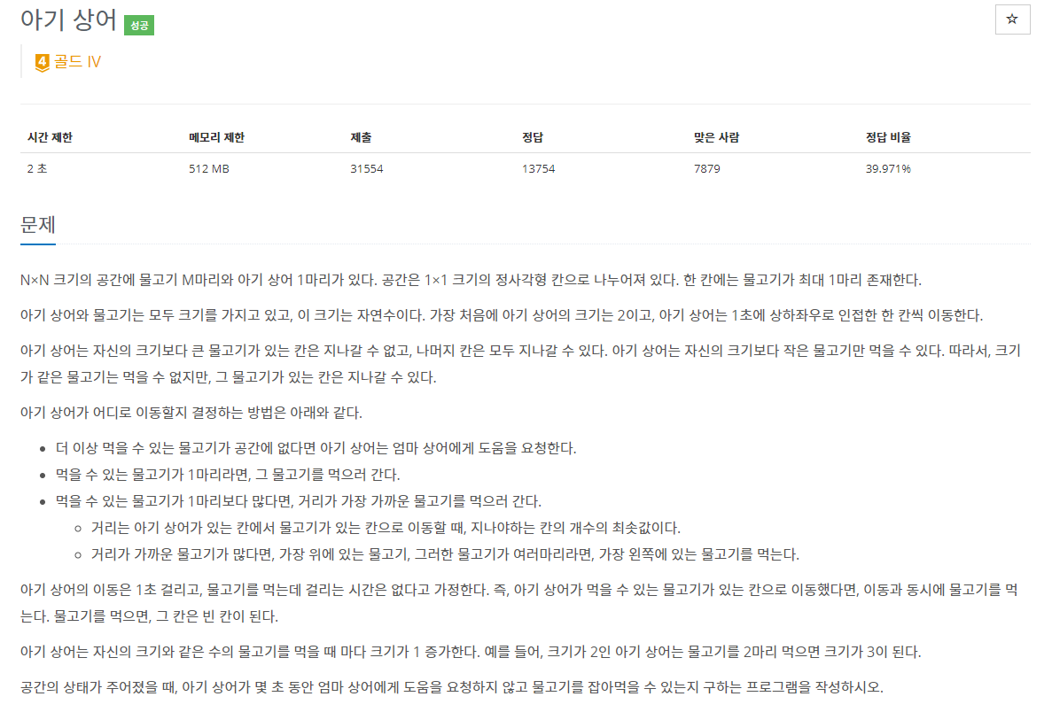아기상어는 자기보다 크기가 작은 물고기를 먹을 수 있고 크기가 같다면 지나갈 수만 있고 크기가 자신보다 크다면 지나갈 수 없다.