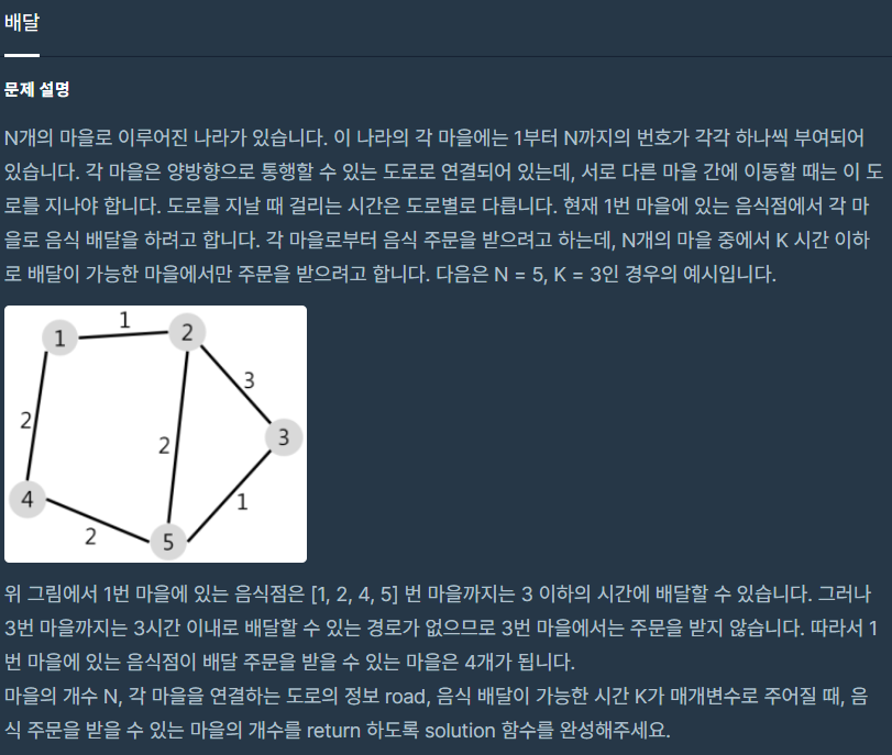 코딩테스트 연습 - 배달
