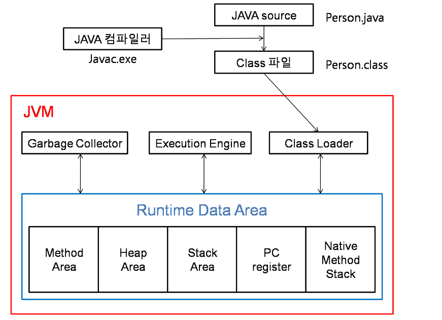 .java 소스를 자바 컴파일러가 컴파일하면 Person.class 같은 .class 파일(바이트코드)이 생성된다.
